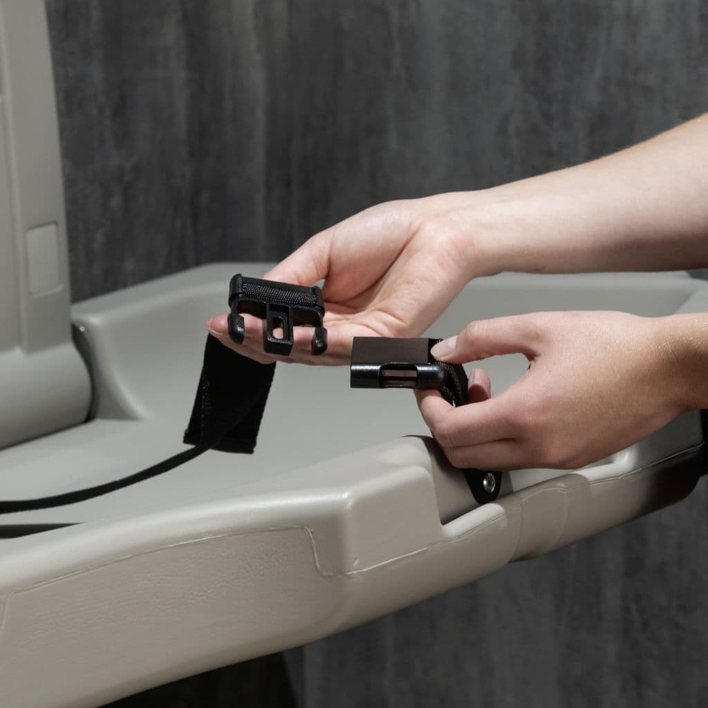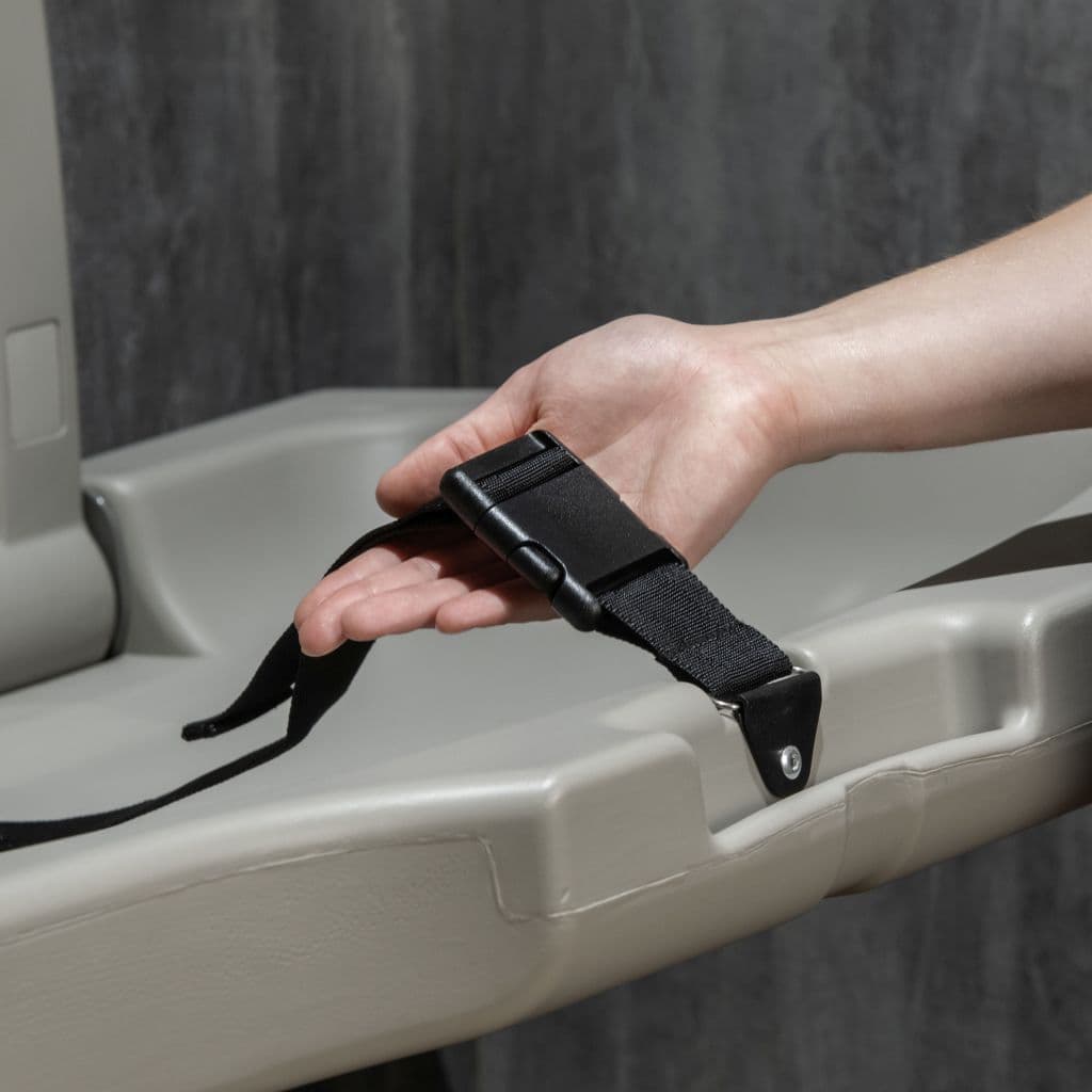 The HL7640 wall mounted baby change unit is easy to clean and has a compact fold-away design and is supplied with adjustable straps for added safety.