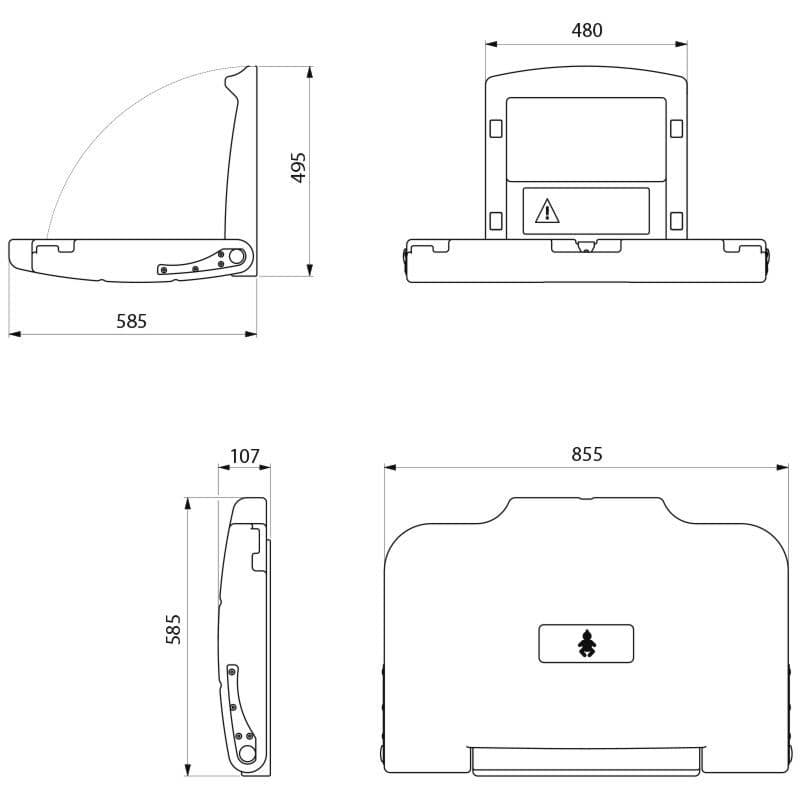 The HL7640 baby change unit folds back to the wall to offer a very compact solution with a folded projection of only 107mm from the wall. This unit requires secure fixing to a wall and is not suitable for stud walls unless suitable noggin / supports are provided.