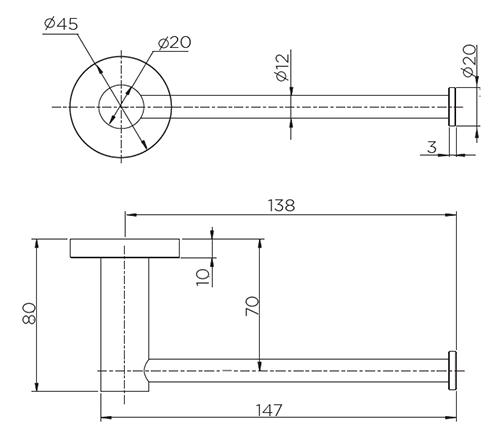 The Healey & Lord Modern Toilet Roll Holder is designed for standard sized toilet rolls, and has concealed wall-mounted fixings.